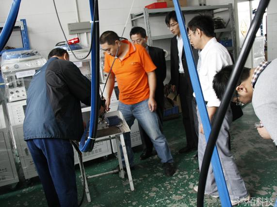 為了讓神龍汽車公司的領(lǐng)導(dǎo)們更加直觀地感受我司設(shè)備的先進(jìn)技術(shù),韓玉琦董事長親自進(jìn)行演示。他嫻熟地操作著設(shè)備,每一個(gè)步驟都精準(zhǔn)無誤,每一項(xiàng)功能的展示都淋漓盡致地展現(xiàn)了我司螺柱焊機(jī)的卓越性能,讓在場的客人們不禁為之贊嘆。