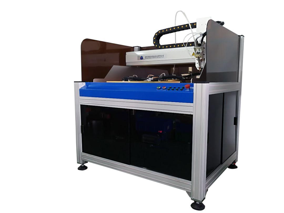 焊接系統(tǒng)。3軸傳動(dòng)均采用高精度滾珠絲桿線性模組,運(yùn)行穩(wěn)定,定位精度